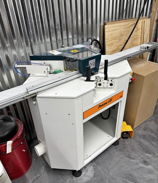 This is a Factory Refurbished Brevetti Prisma CE Double Miter Saw; it has been unused since it was refurbished/purchased and is basically in new condition. Due to move and changes with business, it no longer serves our needs and must sell. Includes Pneumatic clamp option. New motors, 220volts, 60hz single phase, inches measuring scale."