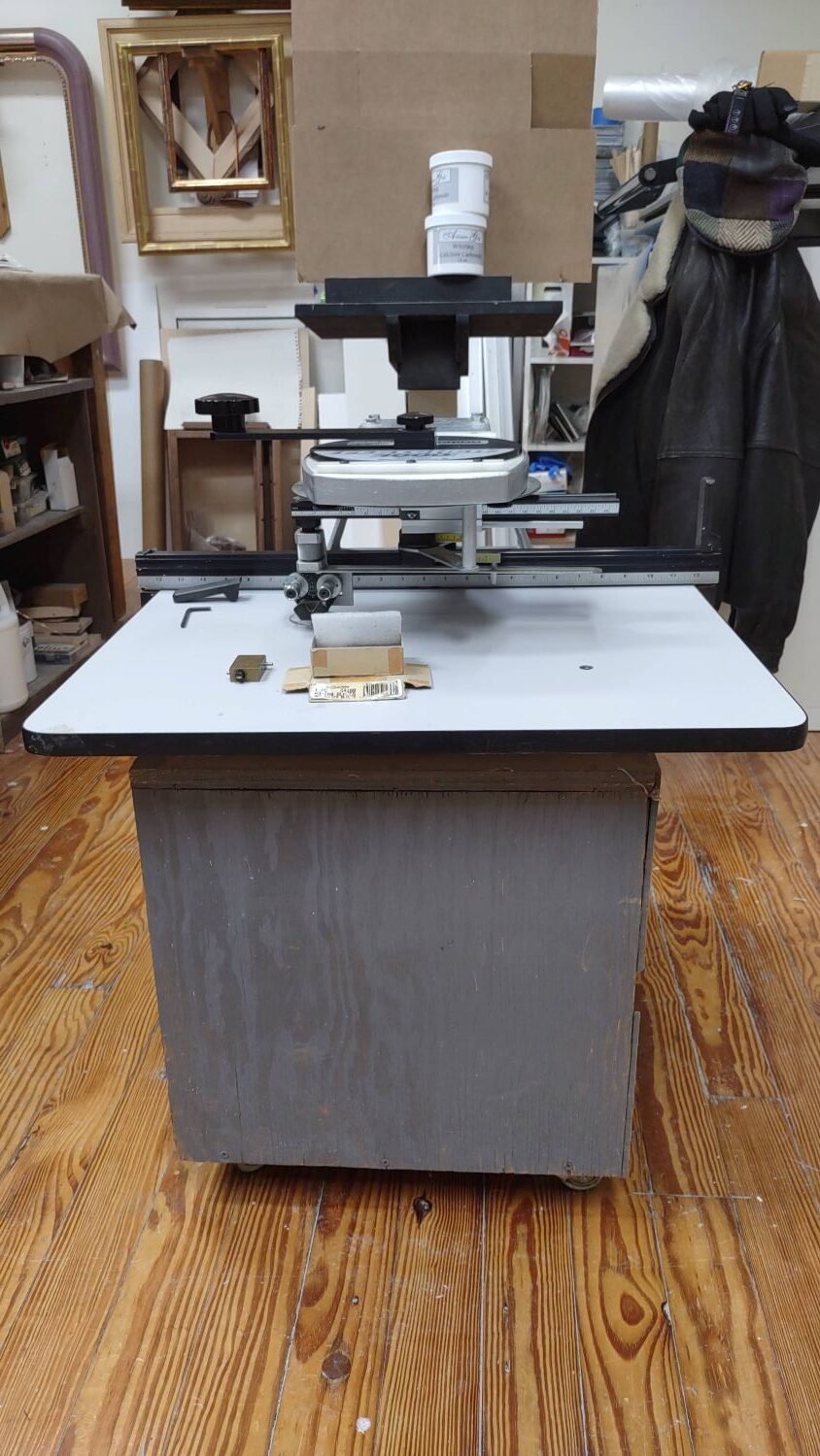 Other than that the machine is practically pristine. Additional supplies, glass scoring attachment, Dexter blades for mat cutting (approx. 65 unused blades."